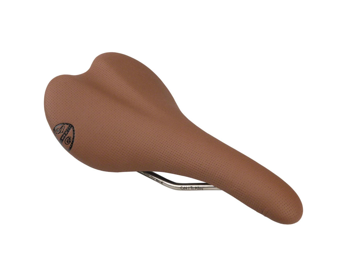 All-City Gonzo Perforated Leather Saddle (Brown) (CrN/Ti Alloy Rails) (136mm)