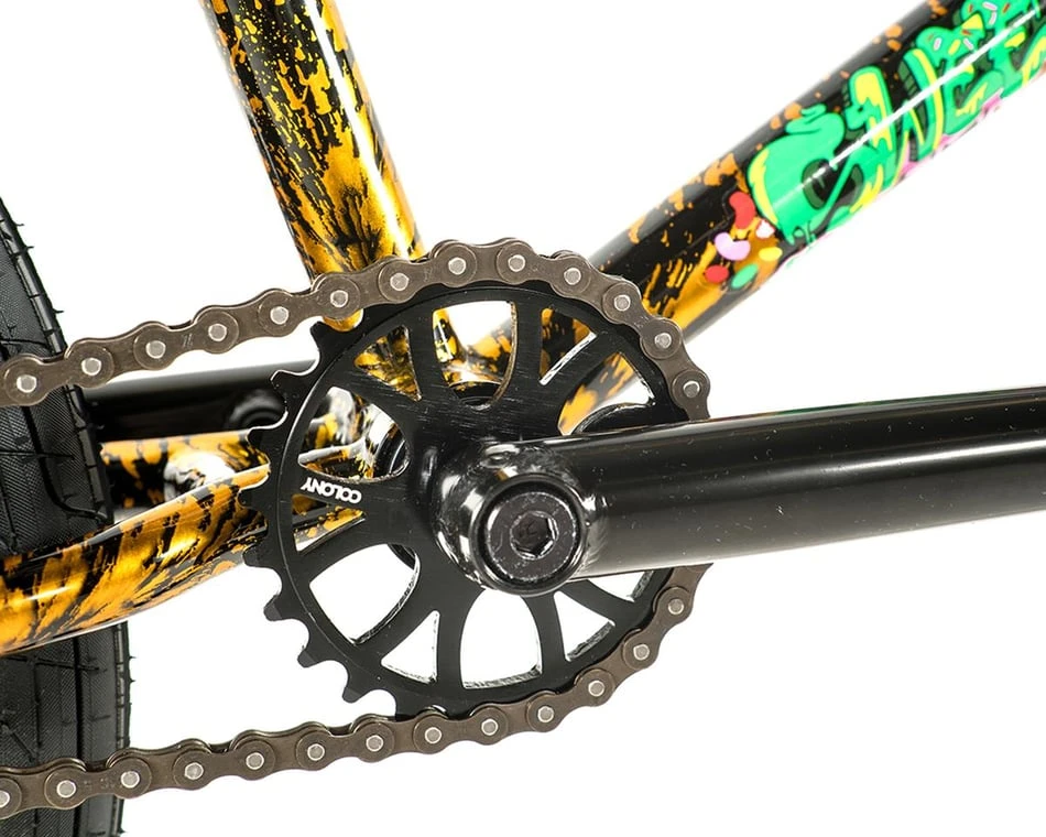 The Colony Sweet Tooth Pro bike is Alex Hiam’s signature model and features some of the same high end parts available separately from Colony: Sweet Tooth frame, Sweet Tooth fork, Squareback stem, Much Room grips, Endeavour sprocket, Fantastic Plastic pedals, Wasp hubs, Pintour rims and Alex Hiam combo seat. The Sweet Tooth is a high-end bike setup for all types of riding. Be it hitting parks, trails or street, this bike has you covered.