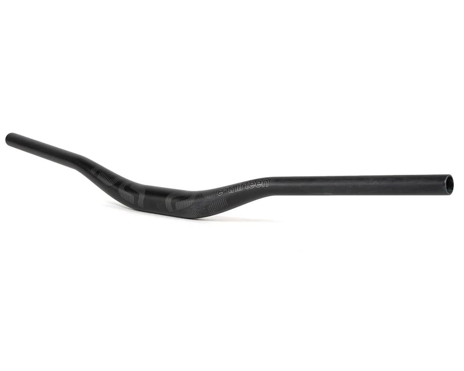 The E*Thirteen Race Carbon Handlebar uses an engineered carbon layup, 800mm wide, and 35mm clamp for ideal ride characteristics. 9 degrees of backsweep is easier on the wrists than most traditional bends of handlebar, and 5 degrees of upsweep offers comfort at all angles.