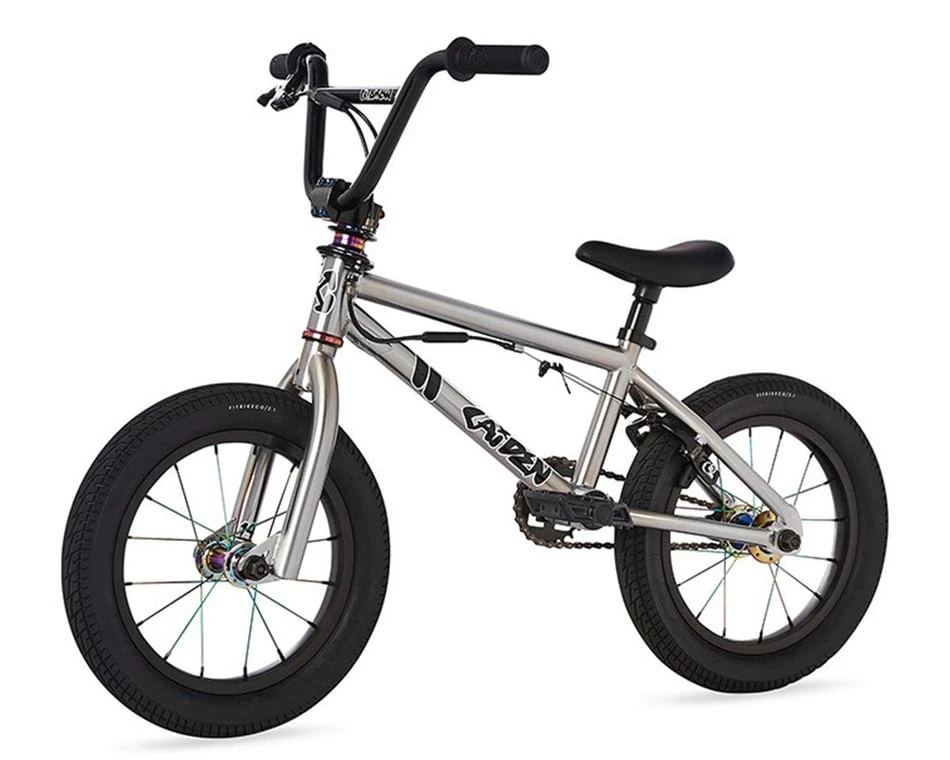 This Brushed Chrome version is the signature colorway of BMX phenom and YouTube star Caiden Cernius. The hubs, headset cups, headset spacers, stem bolts and seat clamp bolt all feature an Oil Slick finish to give it a more custom look. And, of course, it has a detangler to make it easier for your little shredder to learn to ride like Caiden.