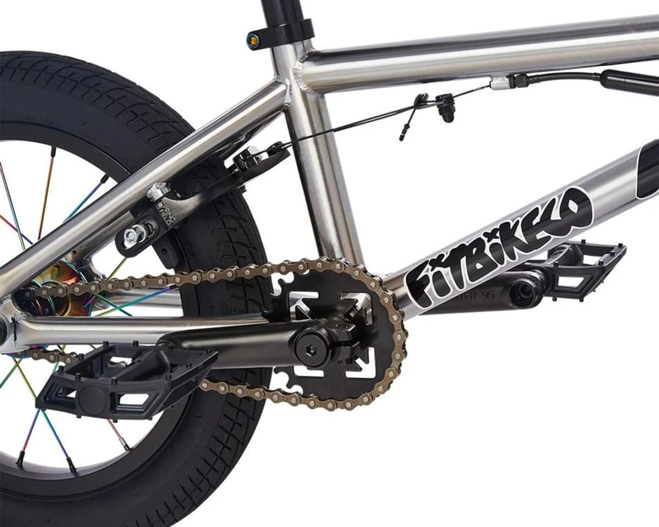 The 2023 Fit Bike Co Misfit 14″ BMX Bike touts a geometry that not only fits riders between 12″ and 16″ wheels, but also is designed to ride better than the competition. The components reflect those of a full size 20″ bike and retain the strength and other characteristics of full size bikes. This even carries over to the brake setup. You won’t find a coaster brake here, only a short reach brake lever and Odyssey Springfield U-brake. Whether cruising around the neighborhood or ripping around the skate park, the Misfit 14″ is up to any task that involves riding, learning, and having fun.