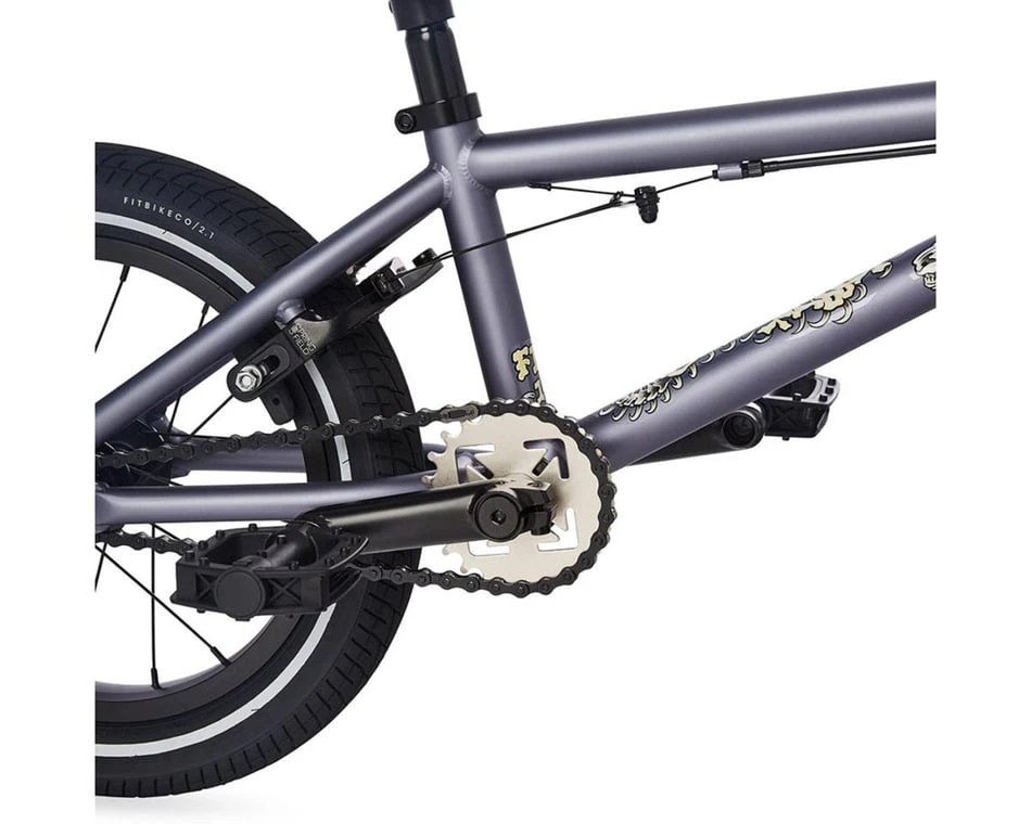 The 2023 Fit Bike Co Misfit 14″ BMX Bike touts a geometry that not only fits riders between 12″ and 16″ wheels, but also is designed to ride better than the competition. The components reflect those of a full size 20″ bike and retain the strength and other characteristics of full size bikes. This even carries over to the brake setup. You won’t find a coaster brake here, only a short reach brake lever and Odyssey Springfield U-brake. Whether cruising around the neighborhood or ripping around the skate park, the Misfit 14″ is up to any task that involves riding, learning, and having fun.