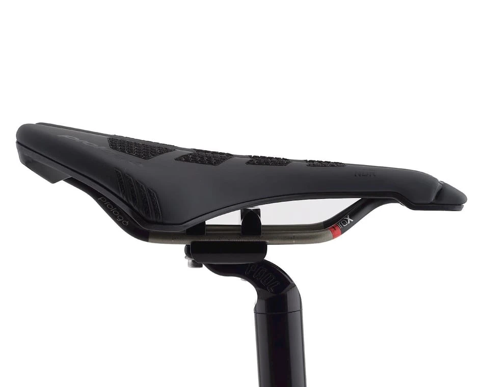 Saddle styles have dramatically changed. Prologo’s Dimension project is no exception to this snub-nose, wide-tailed saddle approach. It is all about comfort, performance, lightness and preventing perineal area problems. The project resulted in a saddle unlike anything Prologo had created. The saddle has a short nose (3+ cm shorter than a traditional saddle) to reduce contact and pressure in the frontal area, especially for low position riding, like riding in the drops. It also features a wide tail for improved stability, weight distribution and power transfer.