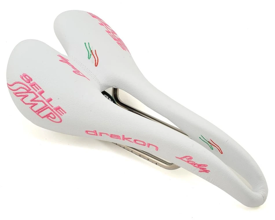 Drakon is the ideal saddle for sports or leisure cycling. It has the same structure as the Forma model, with a medium padding. Covered in real leather for the black models and Lorica microfiber for the colored models. It has excellent all-round features and is particularly suitable for anyone with a medium-wide pelvis. Drakon is padded with elastomer in the supporting points for the ischial tuberosities and buttocks. The Selle SMP patented features, including the completely open central channel, the original front nose and raised rear support, give these saddles a fascinating aerodynamic style. The Drakon model is the intermediate solution between the Dynamic and Lite 209 models, which is particularly suitable for anyone with a medium-wide pelvis.