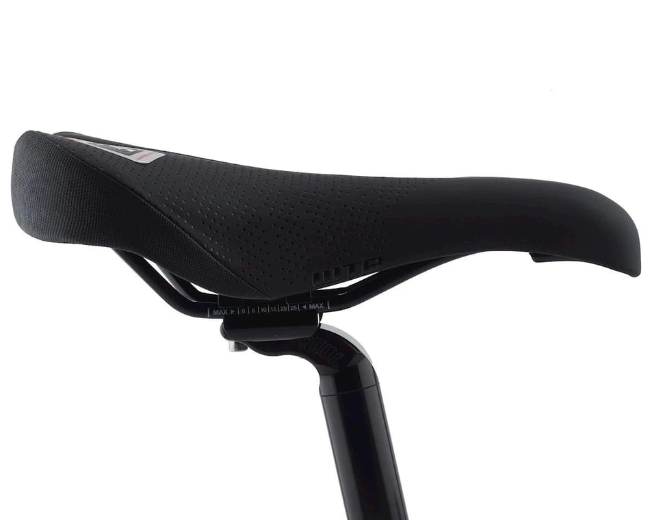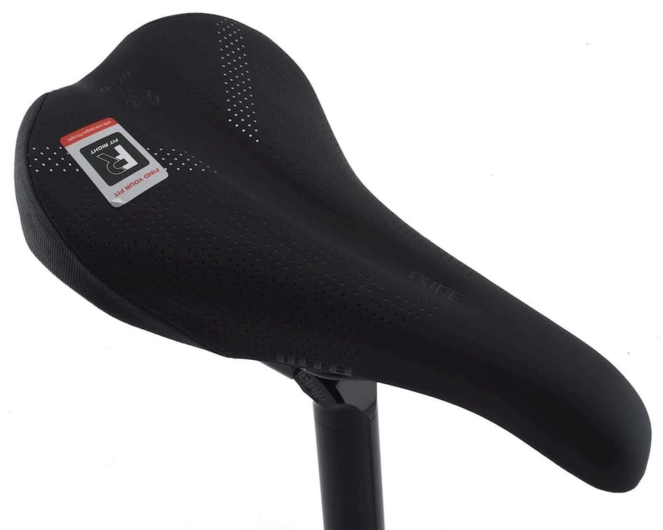 This is the WTB Pure Saddle. An excellent all-mountain and distance saddle, the Pure features a drop nose design preventing hang ups, as well as enough padding for all day comfort. The Pure is a sure bet for almost any rider and an even better bet for bikepackers.